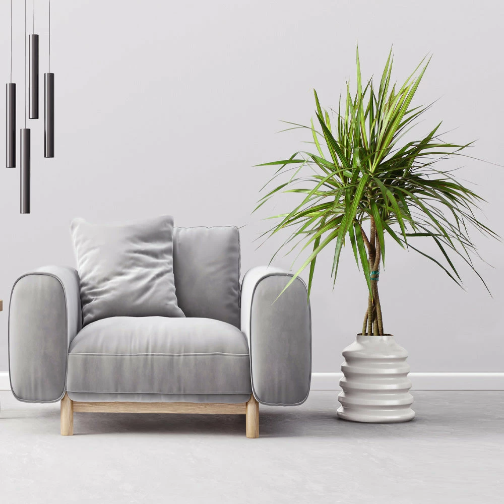 With a braided stem and tropical green fronds, the Braided Madagascar Dragon Tree is a bold house plant that delivers tropical good looks. Plus, the Madagascar’s fronds boast a dark red outline for even more contrast, giving it its nickname: The Red-Edge Dracaena.