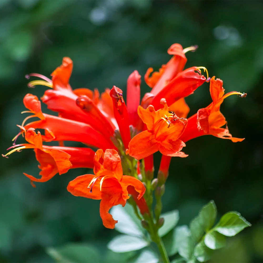 In spring, the Cape Honeysuckle blooms radiant clusters of trumpet-shaped, yellow, apricot, red, or orange flowers that light up any garden. And its green, fern-like foliage contains 5 to 9 leaflets.