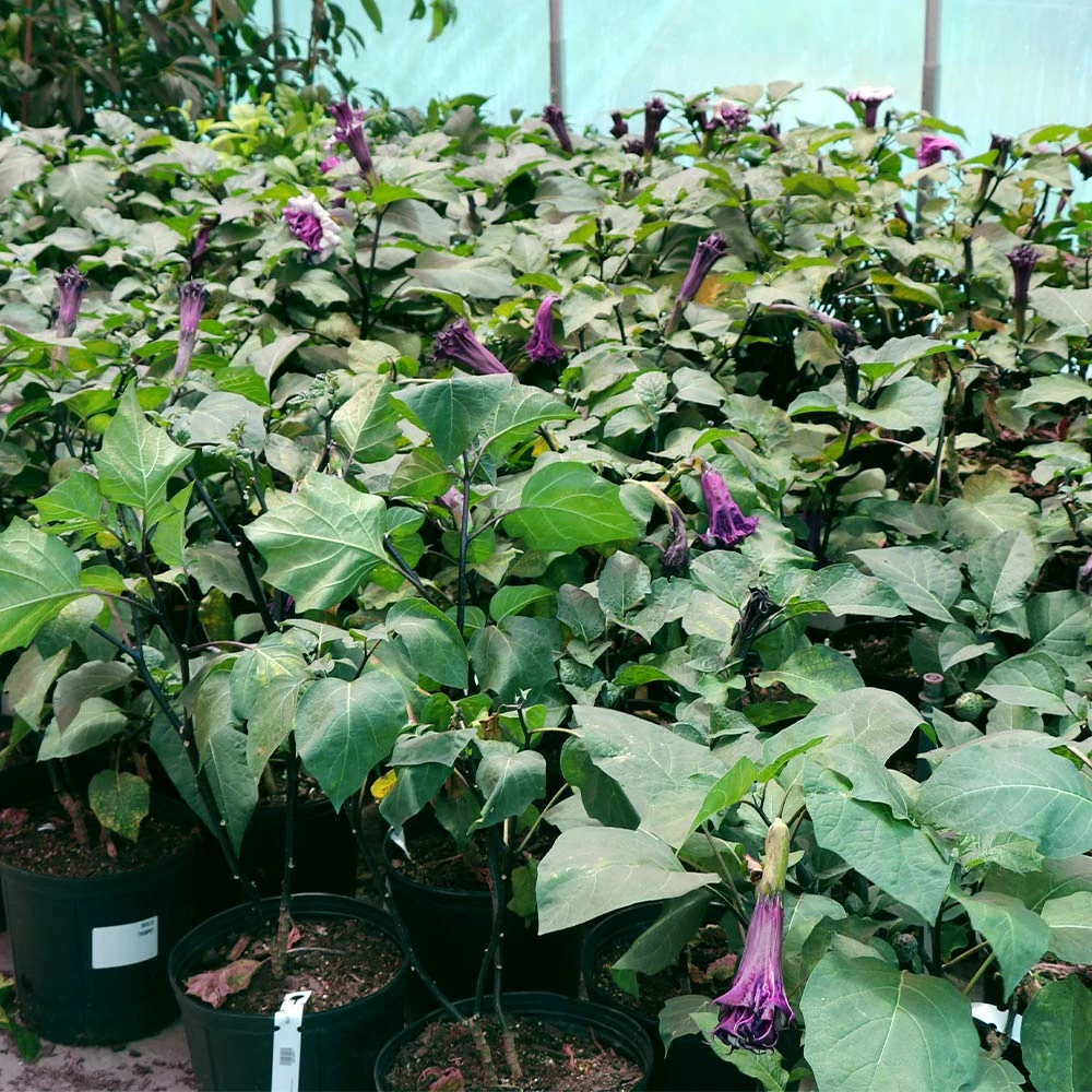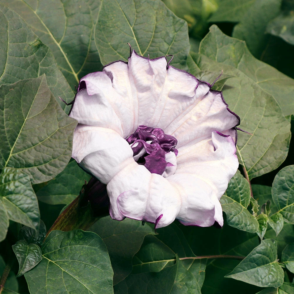 With exotic good looks and captivating floral bell blooms, our Devil’s Trumpet Plant offers unique growth. The snowy white trumpets, complemented by pops of purple color, swing from lush green foliage on the Devil’s Trumpet, transforming plant beds, property borders and beyond.