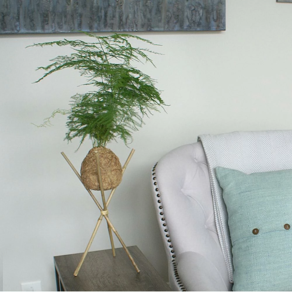 Since the root-filled moss ball is like a built-in green thumb for your Kokedama Asparagus Plant, keeping it healthy and beautiful, you can place it and forget it.