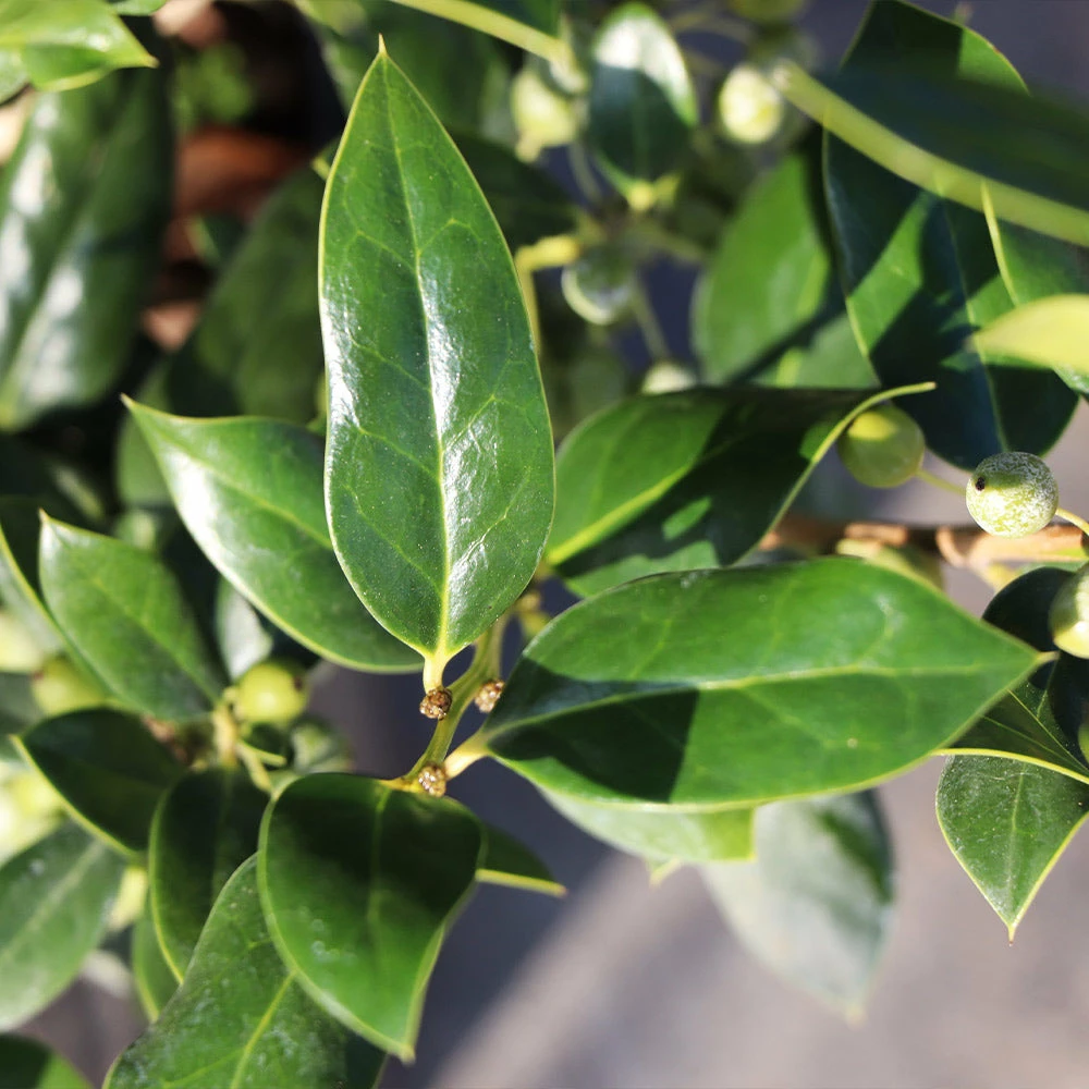 What’s more, the Needlepoint Holly’s leaves don’t have the multiple prongs you’d normally see in Hollies. Instead, each leaf has a single point, hence the shrub’s name.