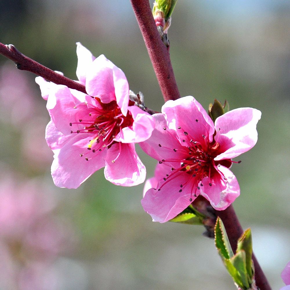 This popular peach stands out from the common yellow or brushed red peaches, with a bright, ruby-red color that serves as a beautiful contrast against the tree’s bright green foliage. And the long hang time of the fruit means you don’t have to worry about your fruits becoming overripe. If the fruit ripens before you pick it, it will simply fall to the ground.Â