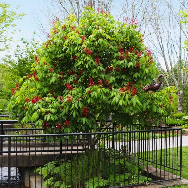 Aside from its lovely early spring foliage and excellent color contrast, the Red Dwarf Buckeye Tree is known for its versatility. It’s a hardy variety that works well as either a tree or a shrub, depending on your landscape needs.Ā