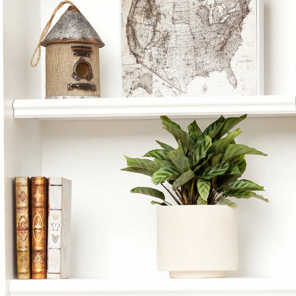 Especially since the Freddie has a moderate, manageable growth rate. This means you can place your Freddie, also known as Calathea, everywhere from tabletops to bare corners on the floor, where it purifies the air and acts as a fresh focal point. So, you’ll get tropical-inspired foliage in every space, all without effort since the Calathea just needs humidity and low light to thrive.