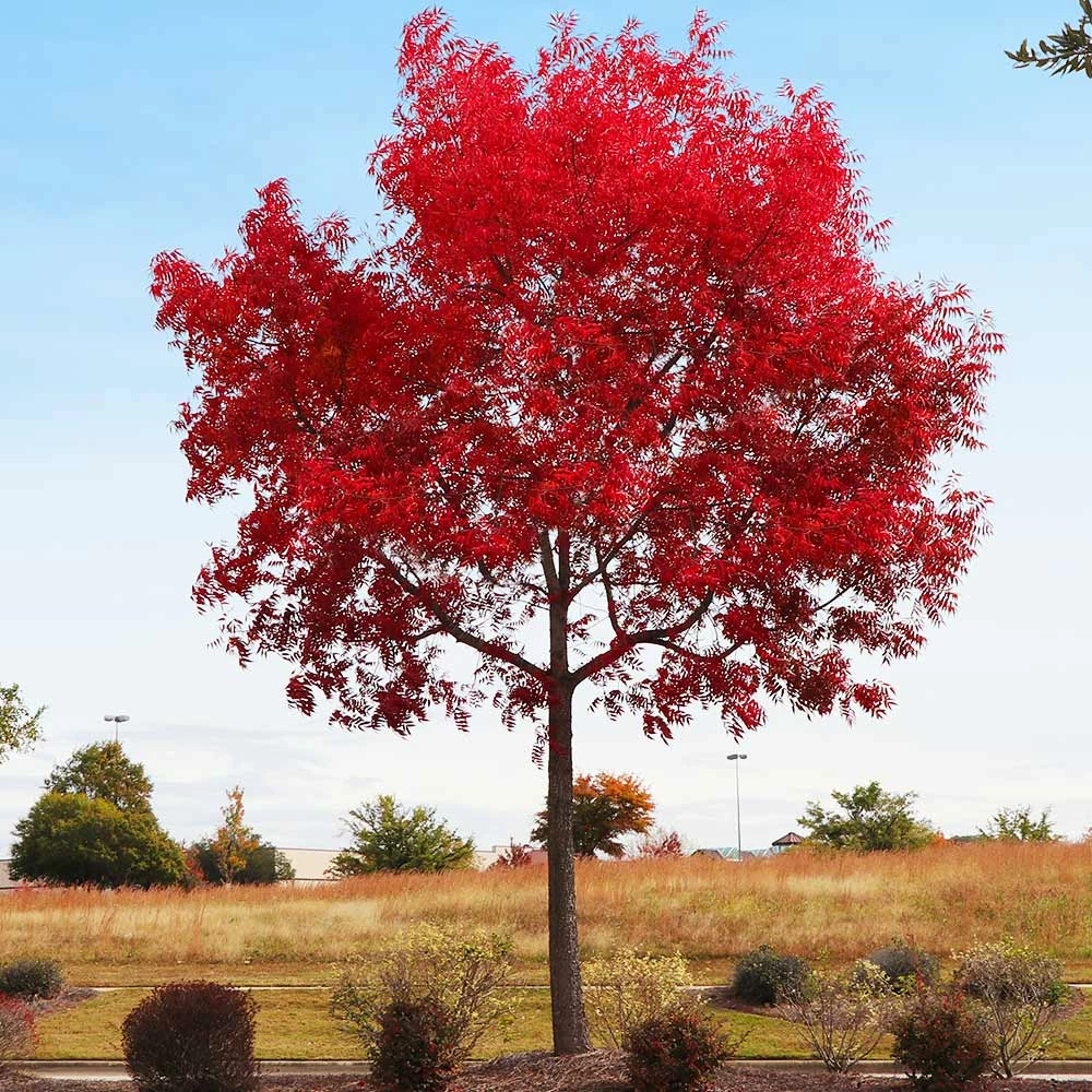 Imagine the beauty of the Chinese Pistache’s foliage in your yard, with brilliant displays that last into December. New leaves emerge in late March to early April, with lustrous green hues in an upright, rounded silhouette. As your tree ages, its bark becomes a focal point, developing deep fissures for more visual interest.